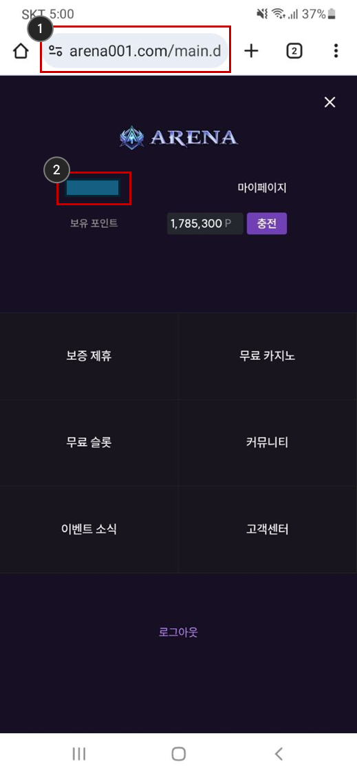2-1. 모바일 인증시 ( 본인 닉네임, 아레나 주소가 나온 이미지 )